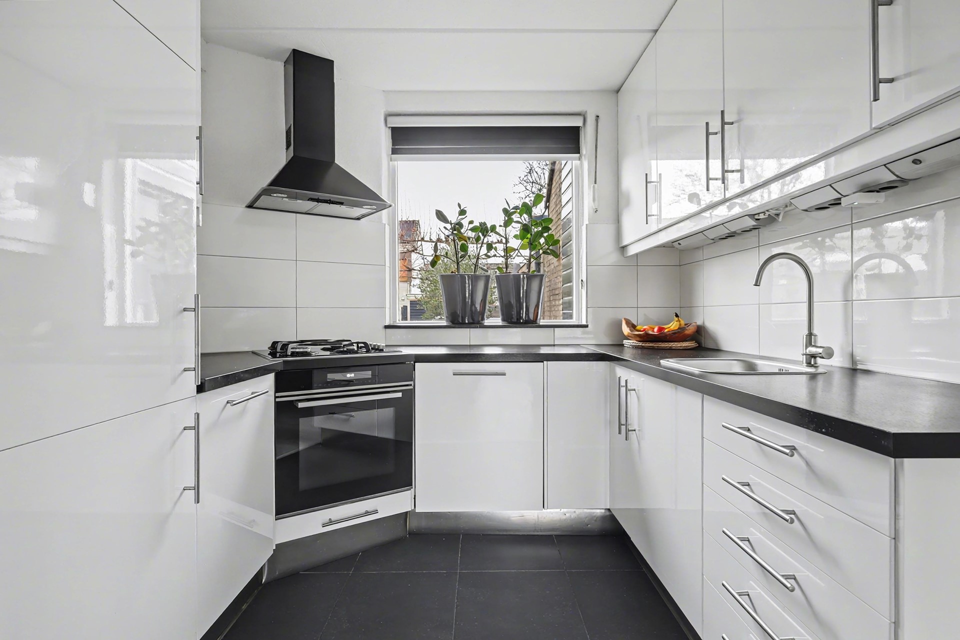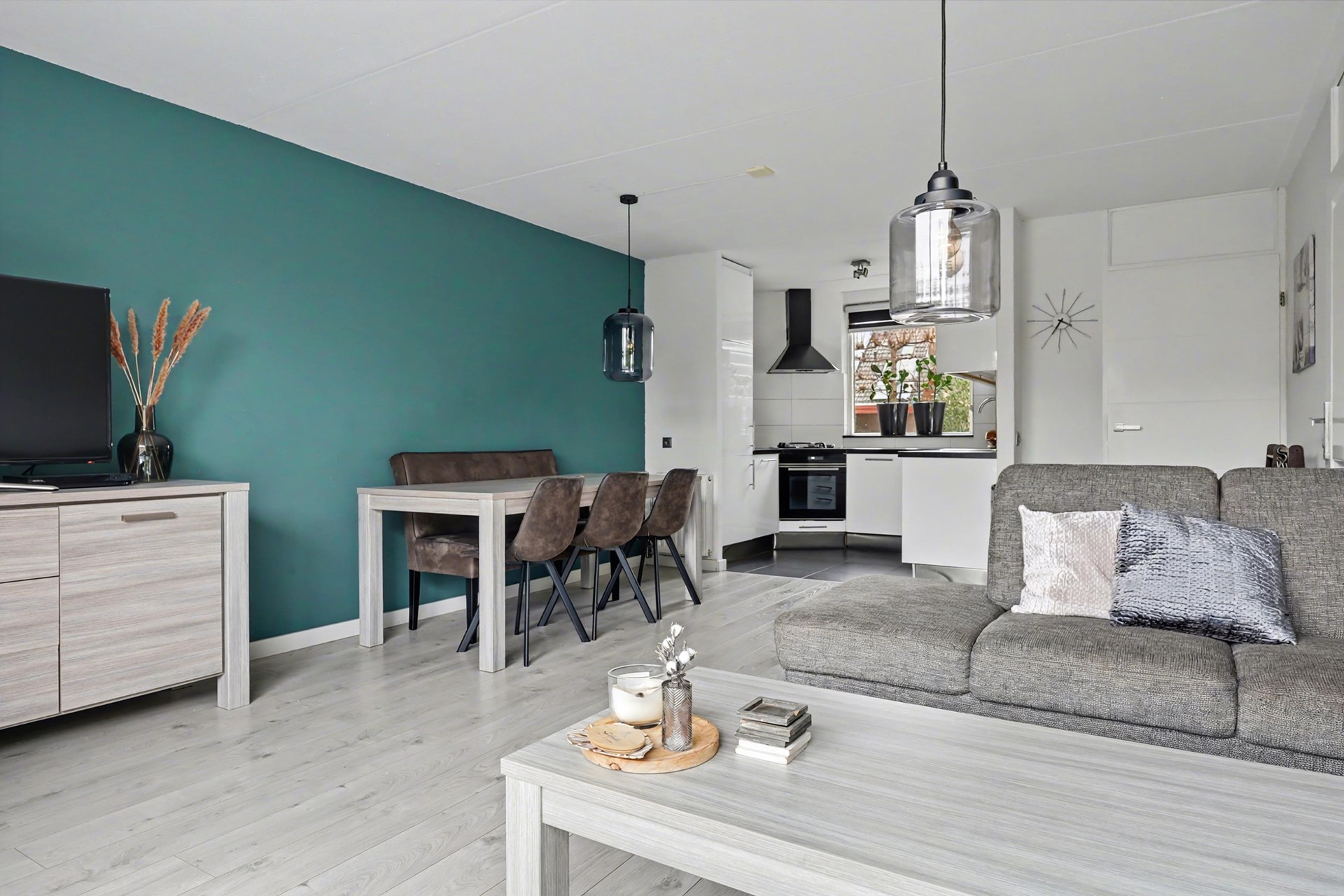 De indeling is als volgt: entree, hal met toilet, meterkast en trapopgang en aan linkerzijde de inpandige berging met toegang tot de aangebouwde garage. Aan rechterzijde de royale living van ca. 34 m² (781 x 520/420) met schuifpui naar de tuin, vaste kast onder de trap en de open keuken met hoekinbouwkeuken v.v. -apparatuur.
