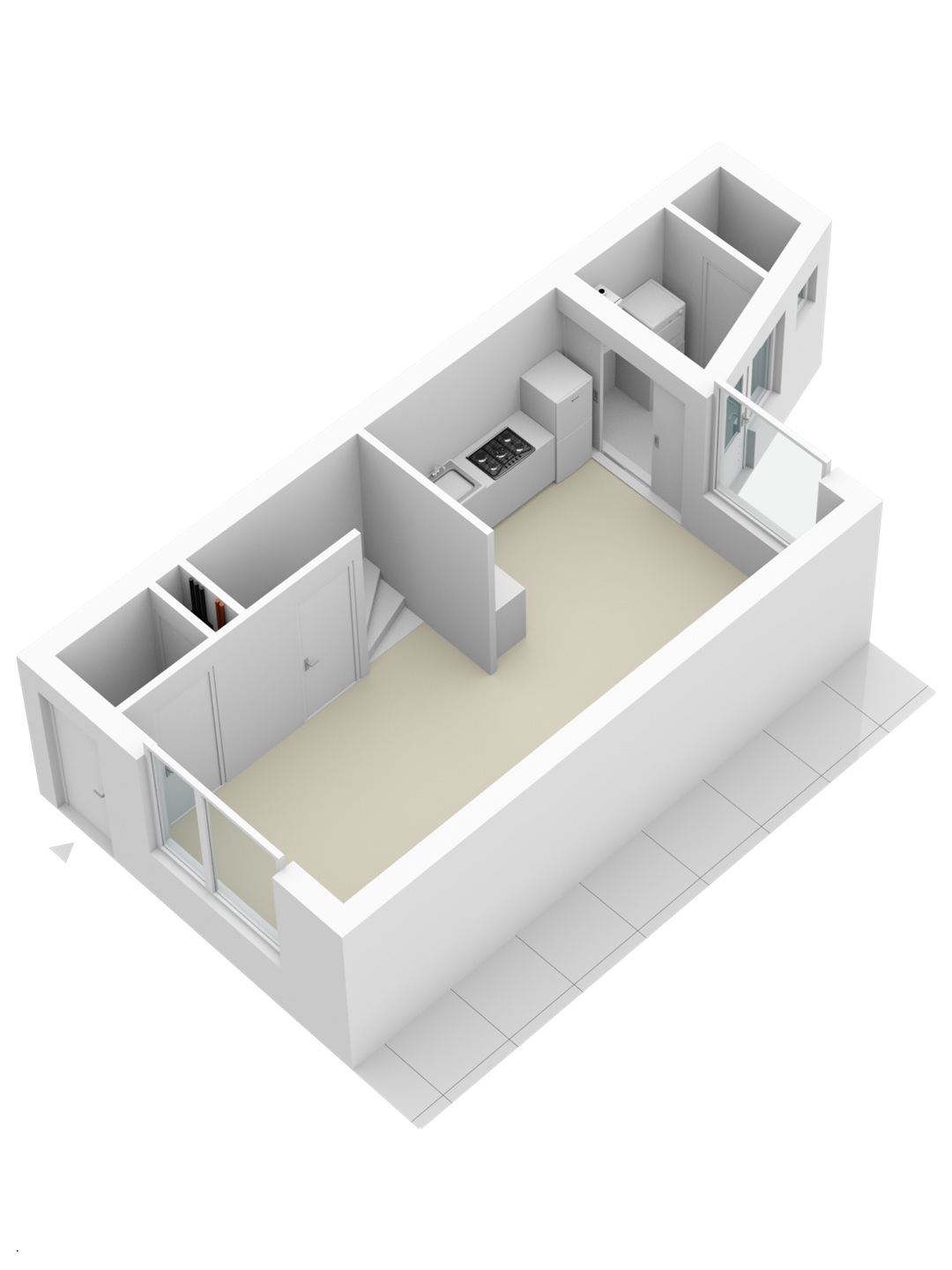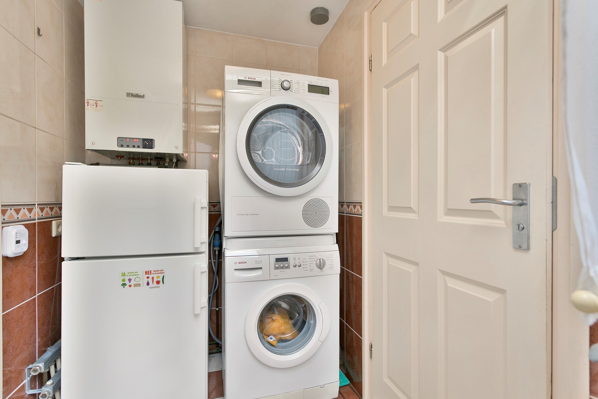 De indeling is als volgt: hal met trapopgang, gezellige doorzon woonkamer (met vaste kast onder de trap) en halfopen keuken (samen groot ca. 770 x 460) met keurige hoek inbouwkeuken v.v. granieten aanrechtblad en inbouwapparatuur. Vanuit de keuken heeft u toegang tot een portaal/de bijkeuken met loopdeur naar de tuin, aansluitingen en afvoeren t.b.v. de wasapparatuur, c.v.-opstelling (VHR-C Valiant 2000) en toegang tot het toilet.
