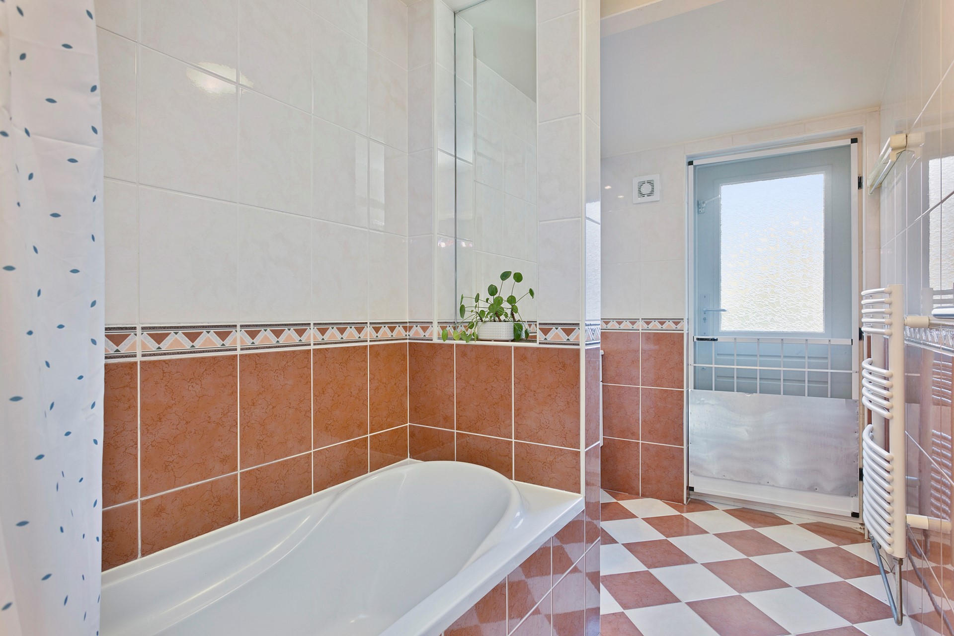 Op de verdieping is de indeling als volgt: overloop, drie slaapkamers (434 x 230 met vaste kast, 329/251 x 230 en 239 x 223) en nette badkamer (321 x 168) met ligbad, designradiaor, badkamermeubel met wastafel en een loopdeur naar het dakterras.