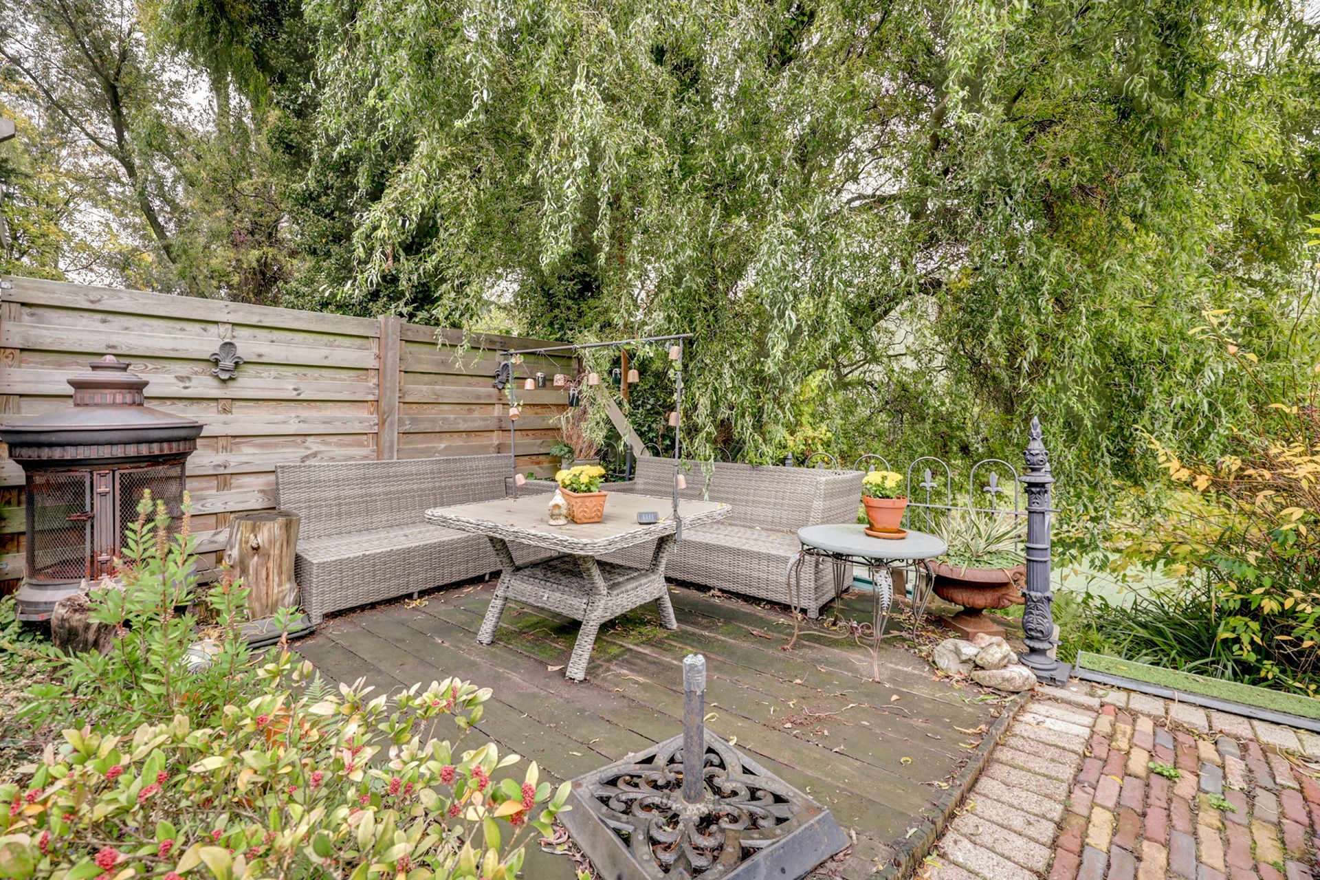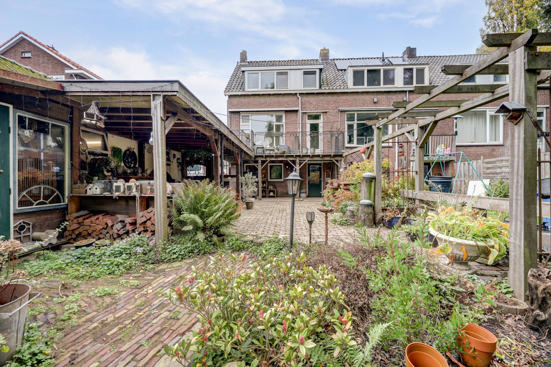 Voor het eerst op de markt: mooie hoekwoning met garage, oprit/parkeergelegenheid, atelier en grote vrije tuin met heerlijke veranda en vlonder aan waterpartij