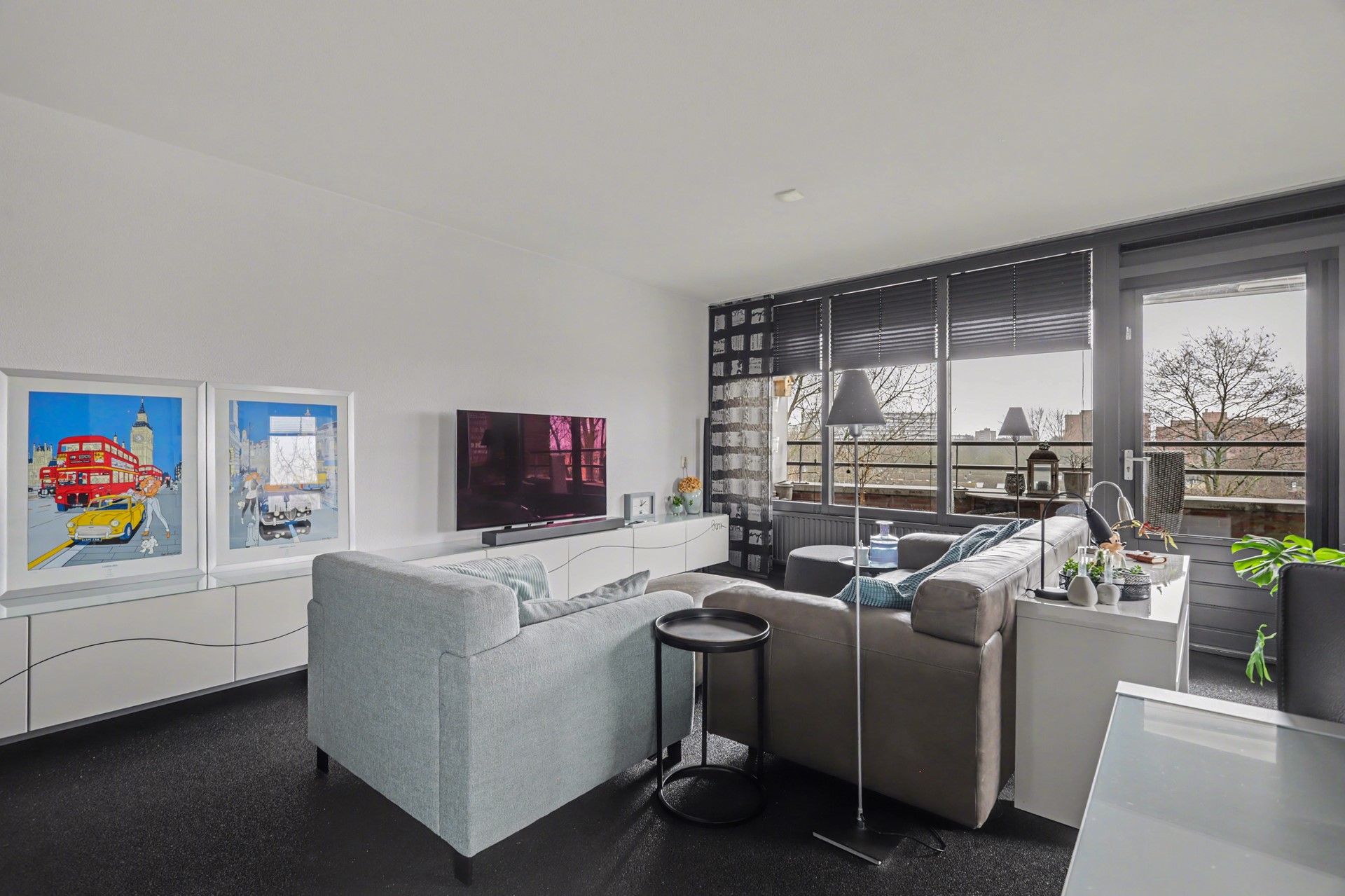 De woonkamer en keuken zijn samen 34 m² groot en zijn - door de grote raampartijen en de hoekligging - gezegend met een hoge mate van lichtinval.