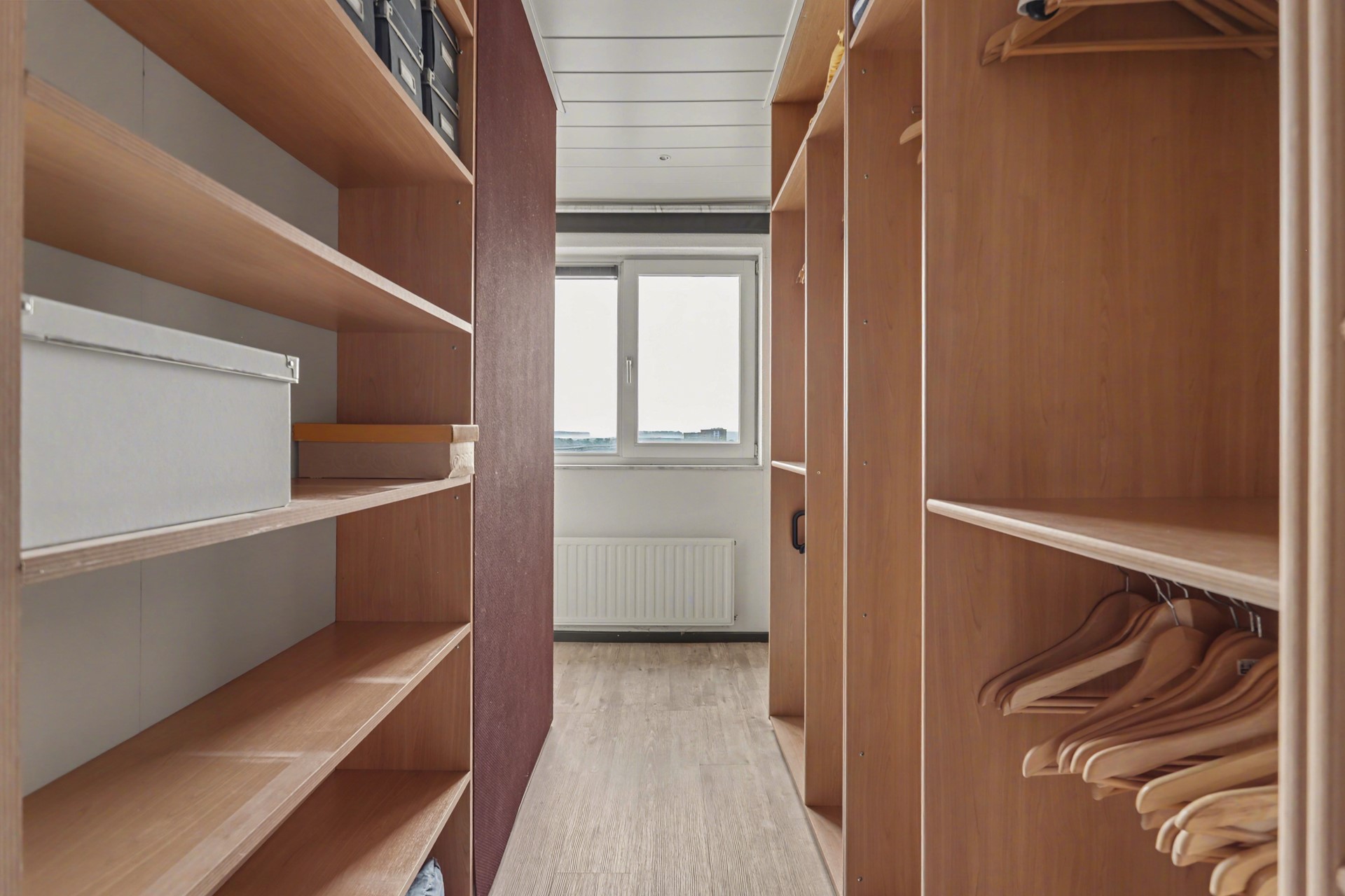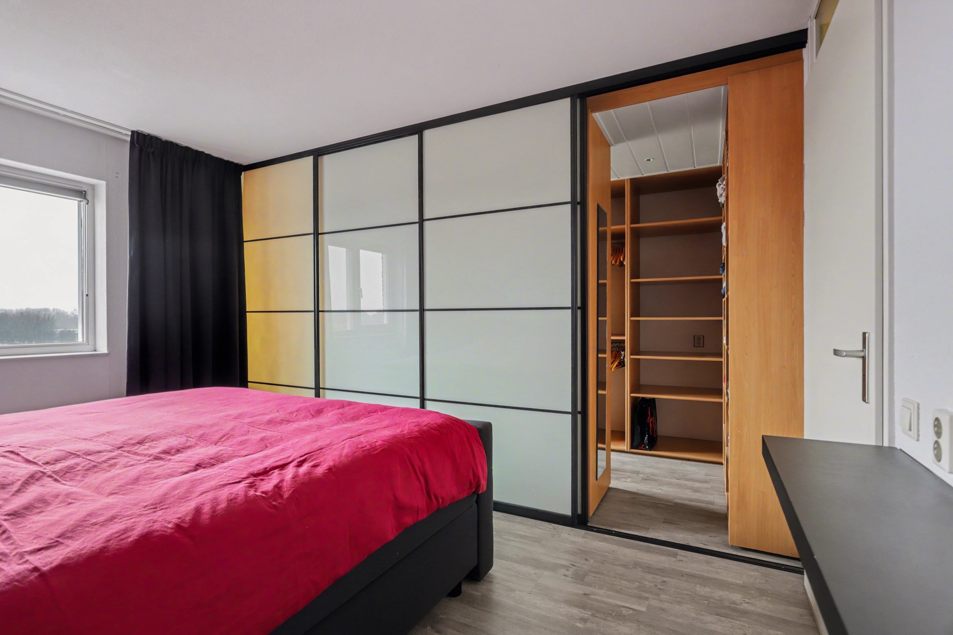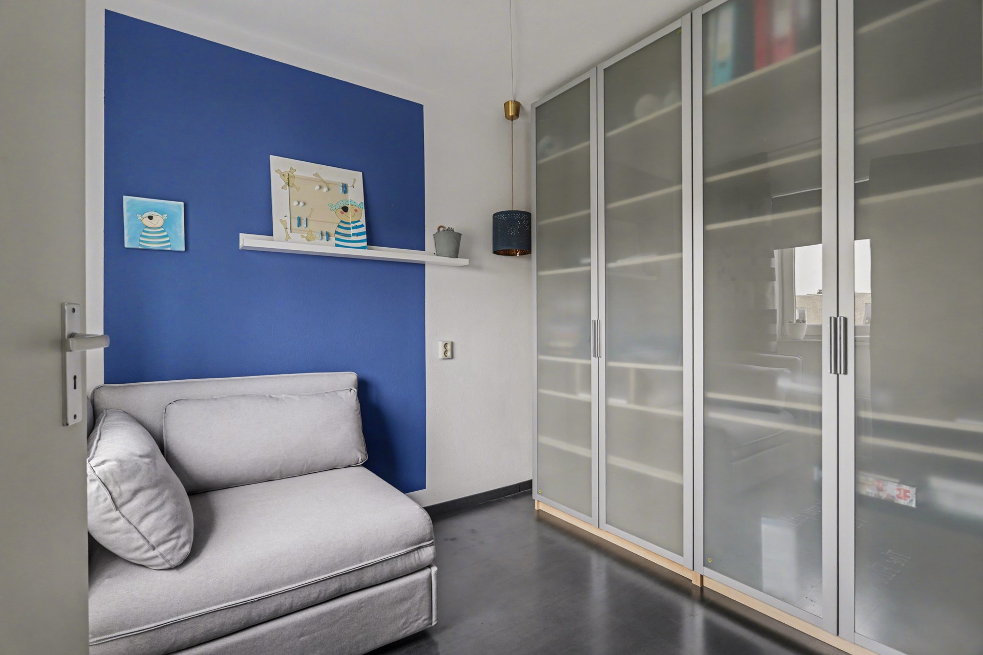 Aangezien er geen noodzaak meer was voor zo veel kamers, hebben de eigenaren er voor gekozen om de indeling te wijzigen, waardoor het thans een driekamerappartement is.
