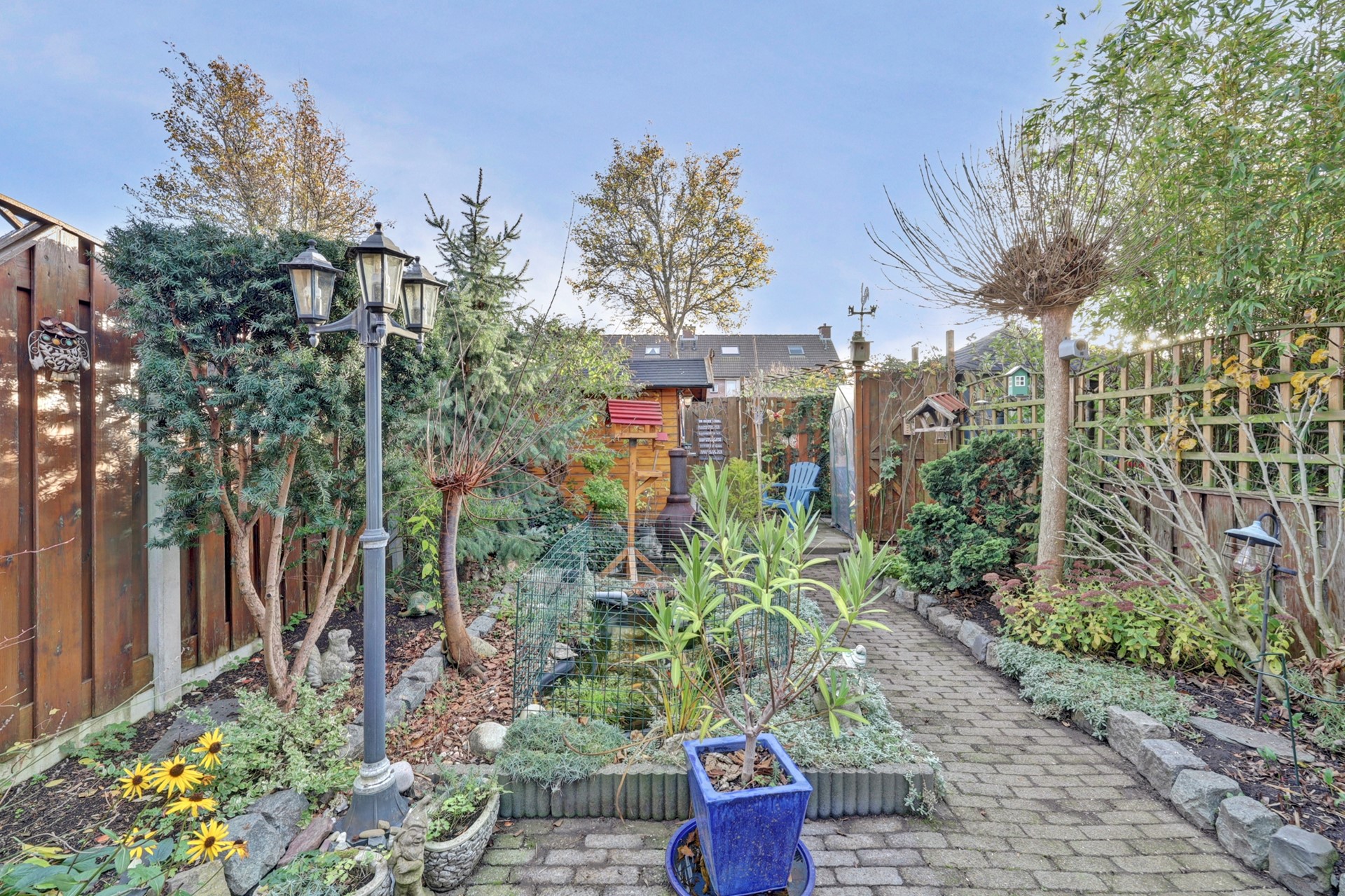 Dat er in die 27 jaar met veel liefde voor de huidige woning is gezorgd en dat de woning met evenveel liefde werd bewoond, dat spat gewoon van de foto's af. Alleen zijn de verkopers dol op groen en vogeltjes, zoals duidelijk zichtbaar is in de zeer zonnige – pal op het zuiden gelegen - tuin. En vogels heb je in de Hoeksche Waard nou eenmaal meer dan in de Boomgaardshoek.
