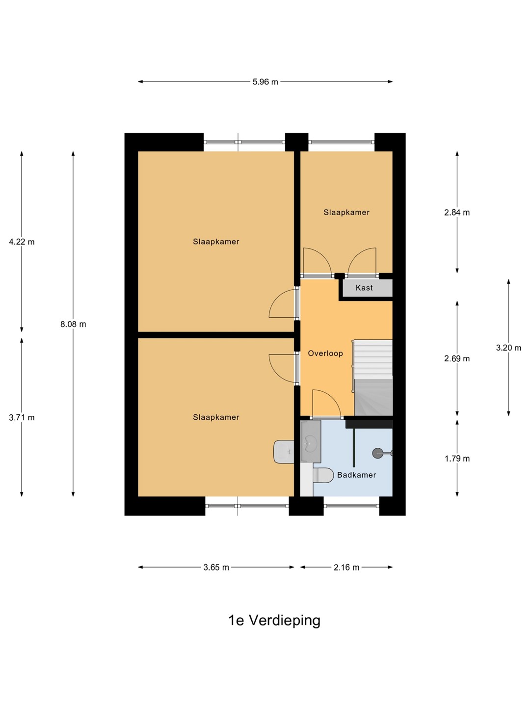 Op de eerste verdieping is de indeling als volgt: overloop, royale hoofdslaapkamer (422 x 366) en tweede slaapkamer (371 x 366) met daartussenin een vaste kastenwand, leuke derde slaapkamer (284 x 216 met vaste kast) en prachtige exclusieve badkamer (216 x 179) uit 2023 v.v. mechanische ventilatie, inloopdouche met Sunshower, een tweede toilet (wandcloset) en een badkamermeubel met gave natuurstenen wastafel.