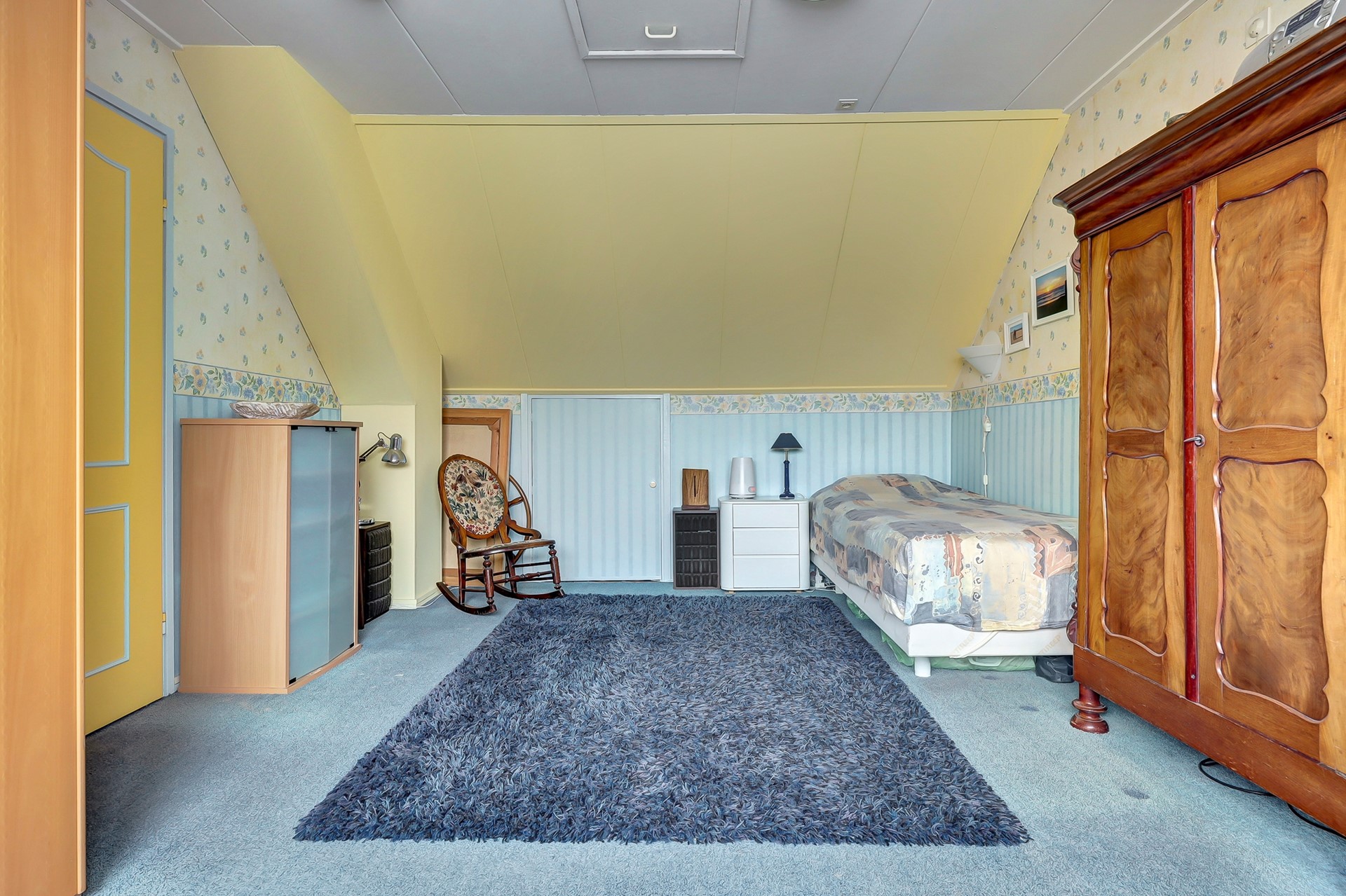 Via een vaste trap bereikt u de grote tweede verdieping, waarop een voorzolder (met c.v.-opstelling en aansluitingen en afvoeren t.b.v. de wasapparatuur) en een grote vierde slaapkamer (560 x 361) met dakkapel zijn afgescheiden. Op deze verdieping vindt u veel bergruimte achter de (dragende) knieschotten.