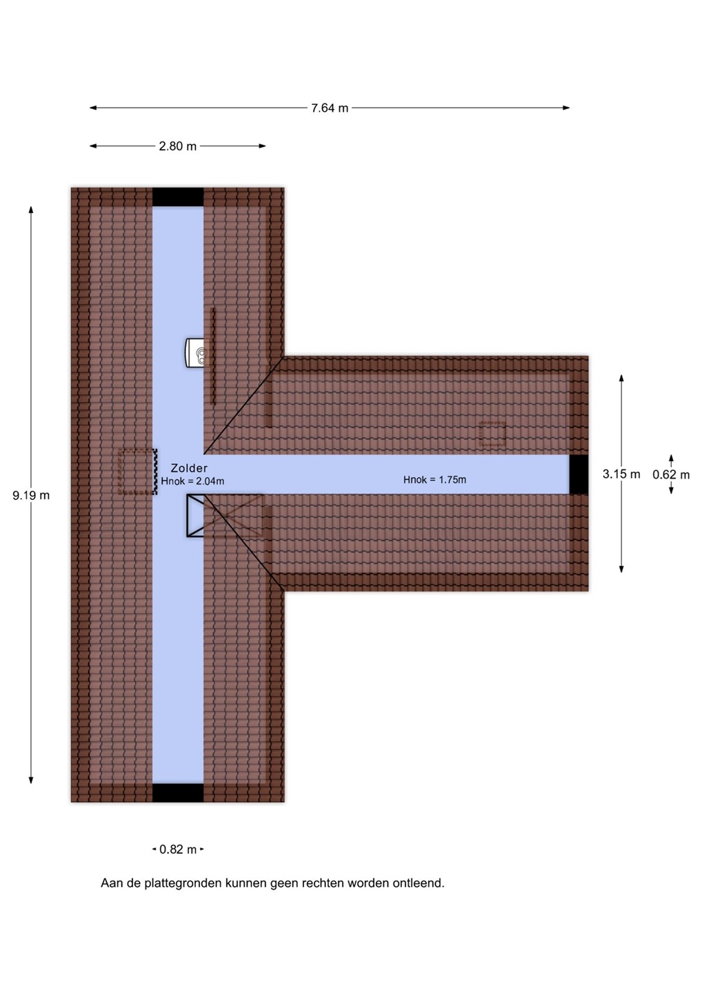Boven de slaapetage bevindt zich een bevloerde bergzolder met onder meer de c.v.-ketel.
