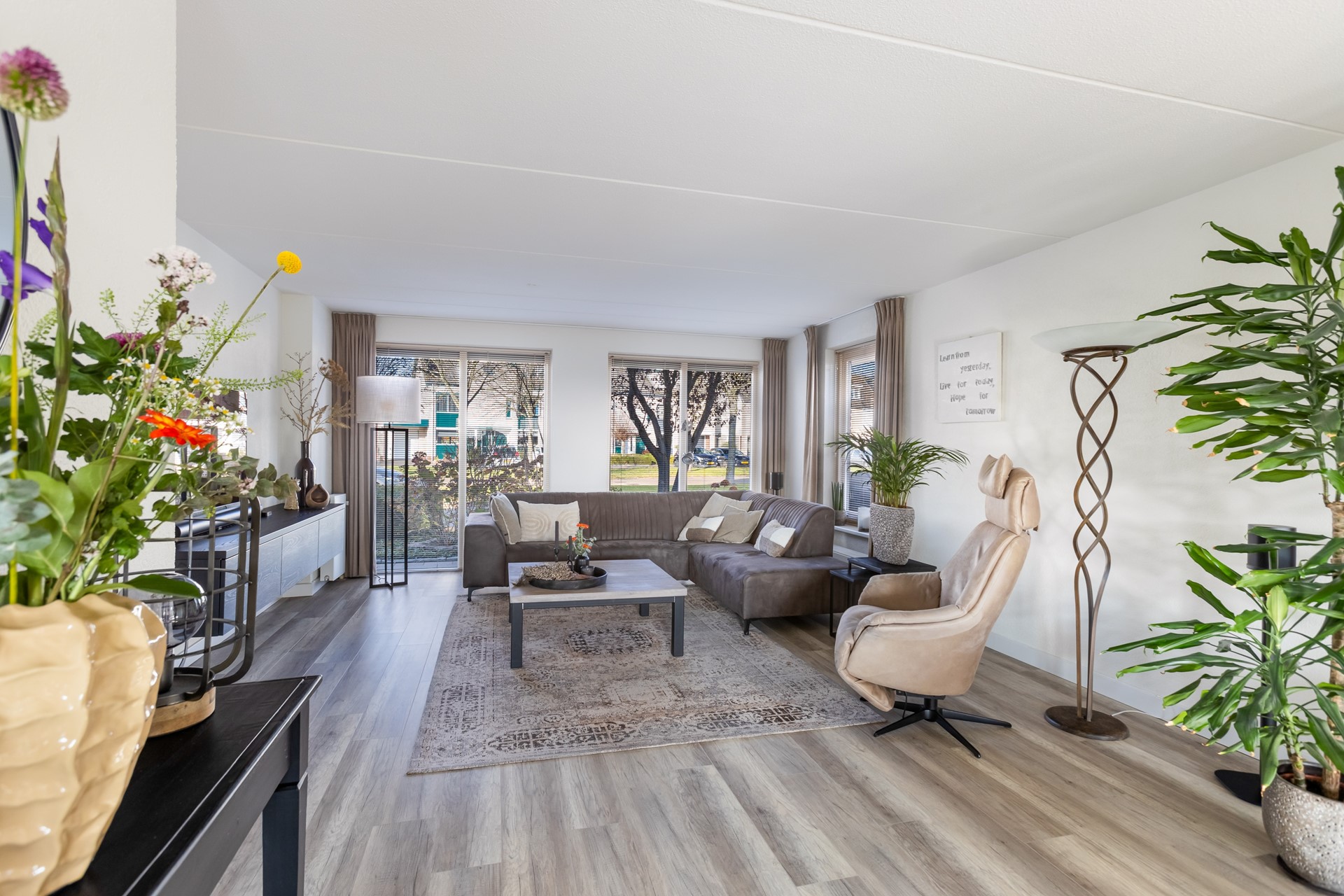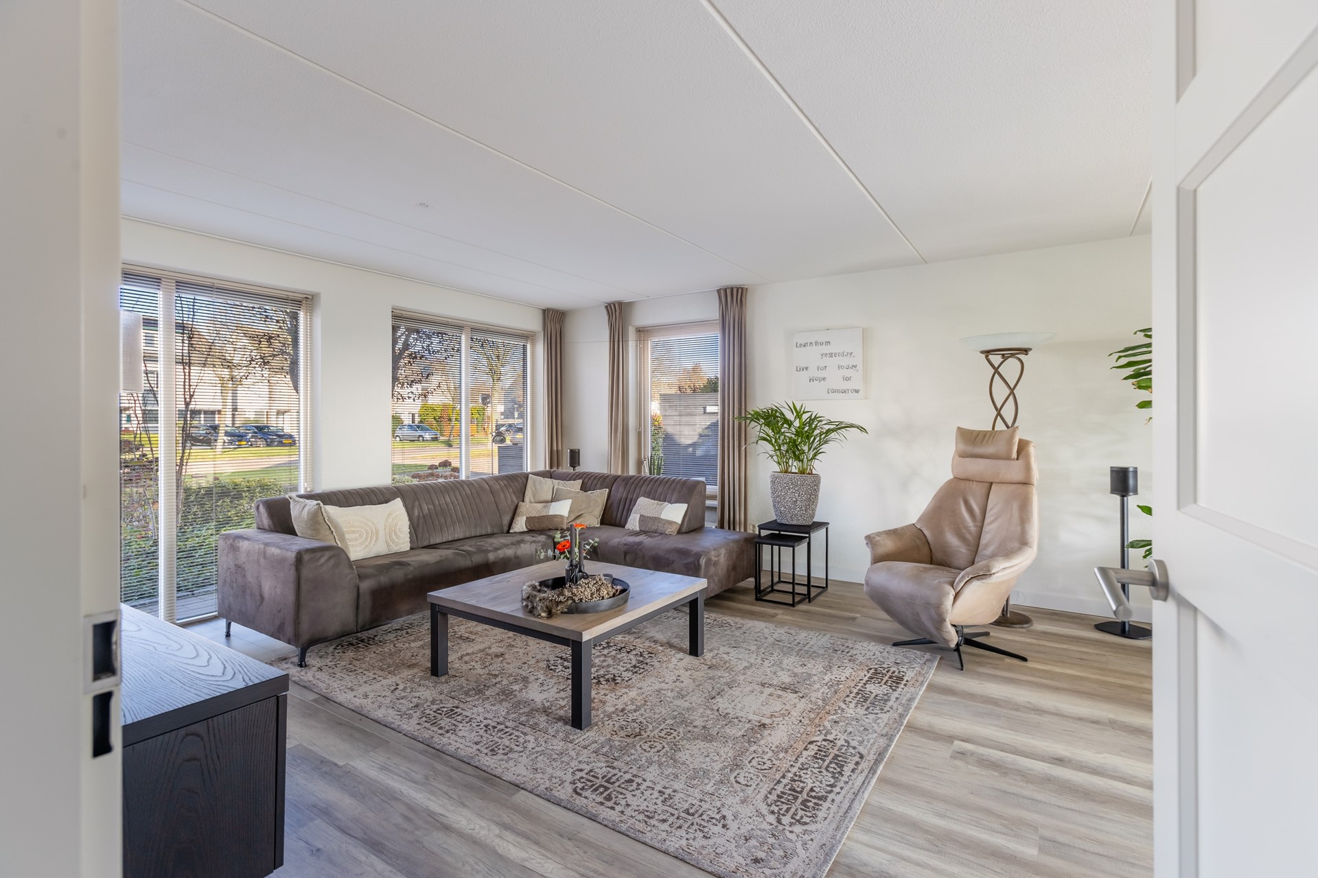 Het is niet dat mijn opdrachtgevers hier niet prettig wonen, integendeel. Ten tijde van de aankoop bestond het gezin uit 3 personen. En nu 'nummer drie' uitgevlogen is', is het huis wel heel groot geworden, voor met zijn tweeën. Tel daarbij op: 1) de lokroep van de geboortestreek, 2) het feit dat de geboortestreek dichterbij het uitgevlogen kind is, 3) het feit dat de ouders die nog in de geboortestreek wonen ouder worden, 4) er iets bijzonder moois en levensloopbestendigs op het pad (regeren is vooruitzien) kwam!