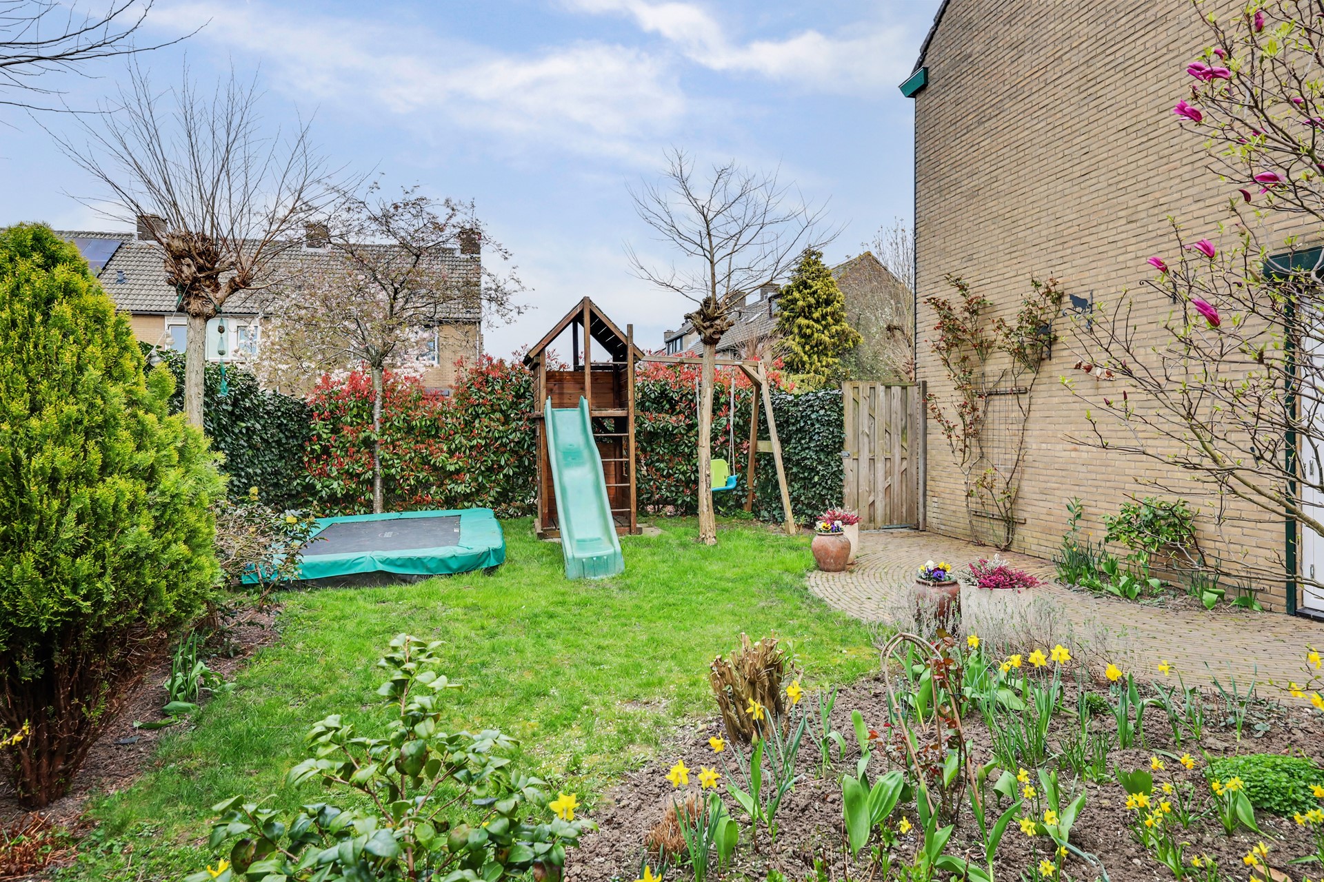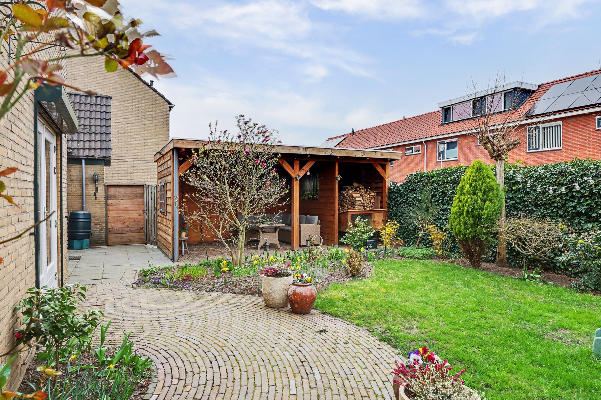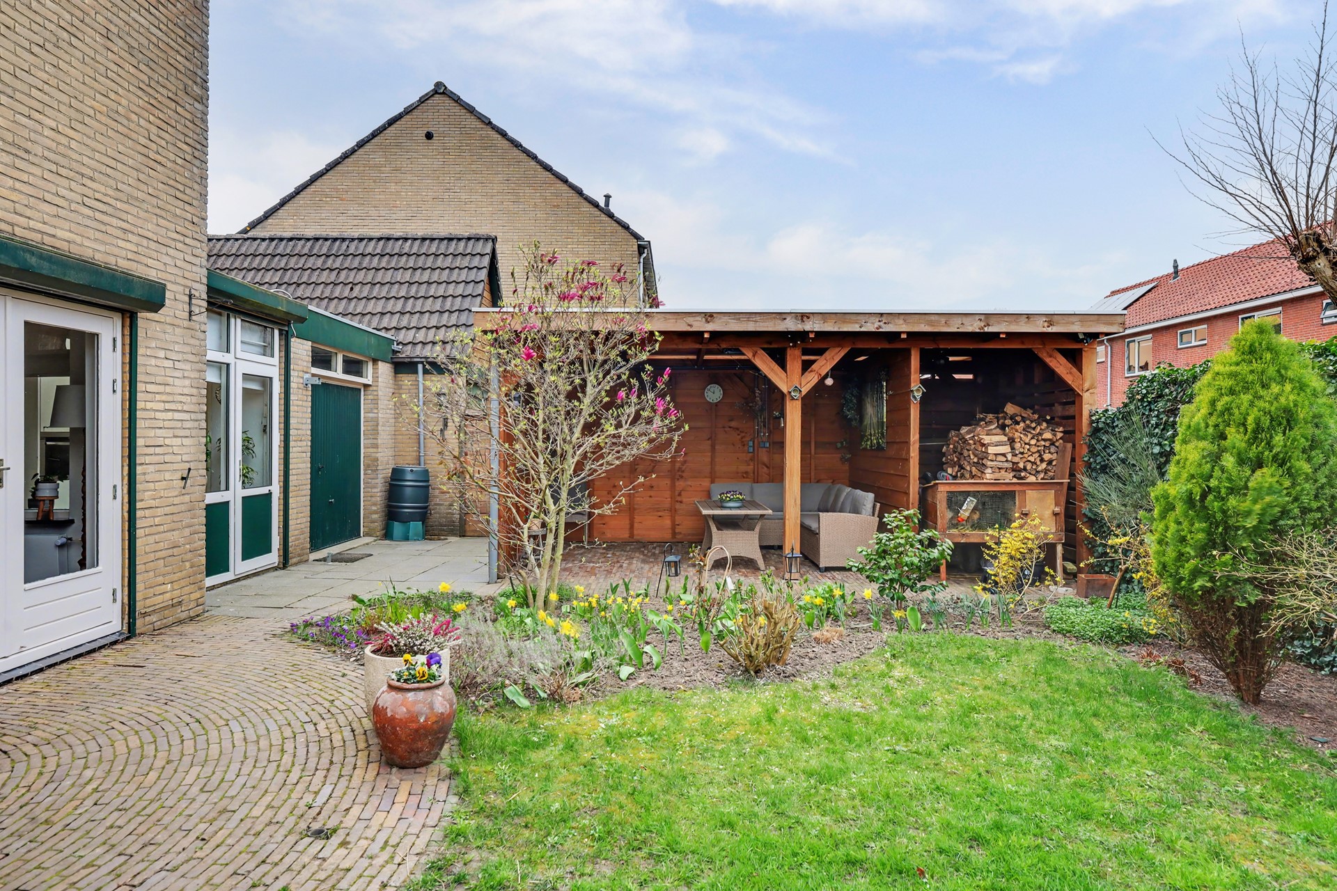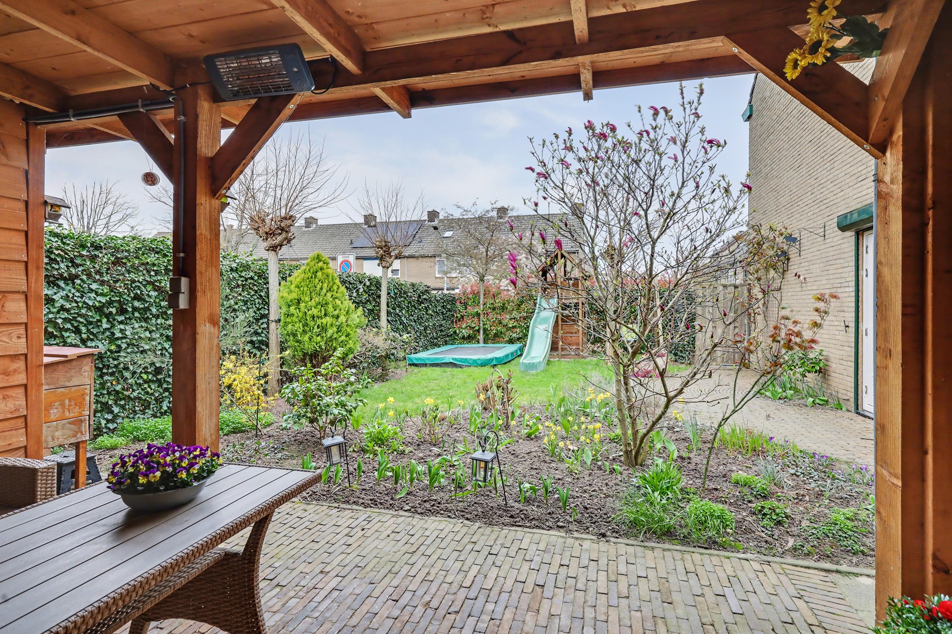 De tuin is royaal, zonnig en fraai aangelegd met onder andere een overkapping en een prachtige magnolia. Hier ervaart u rust, privacy en vooral: ruimte. Niet alleen om te zitten, maar om echt buiten te leven.