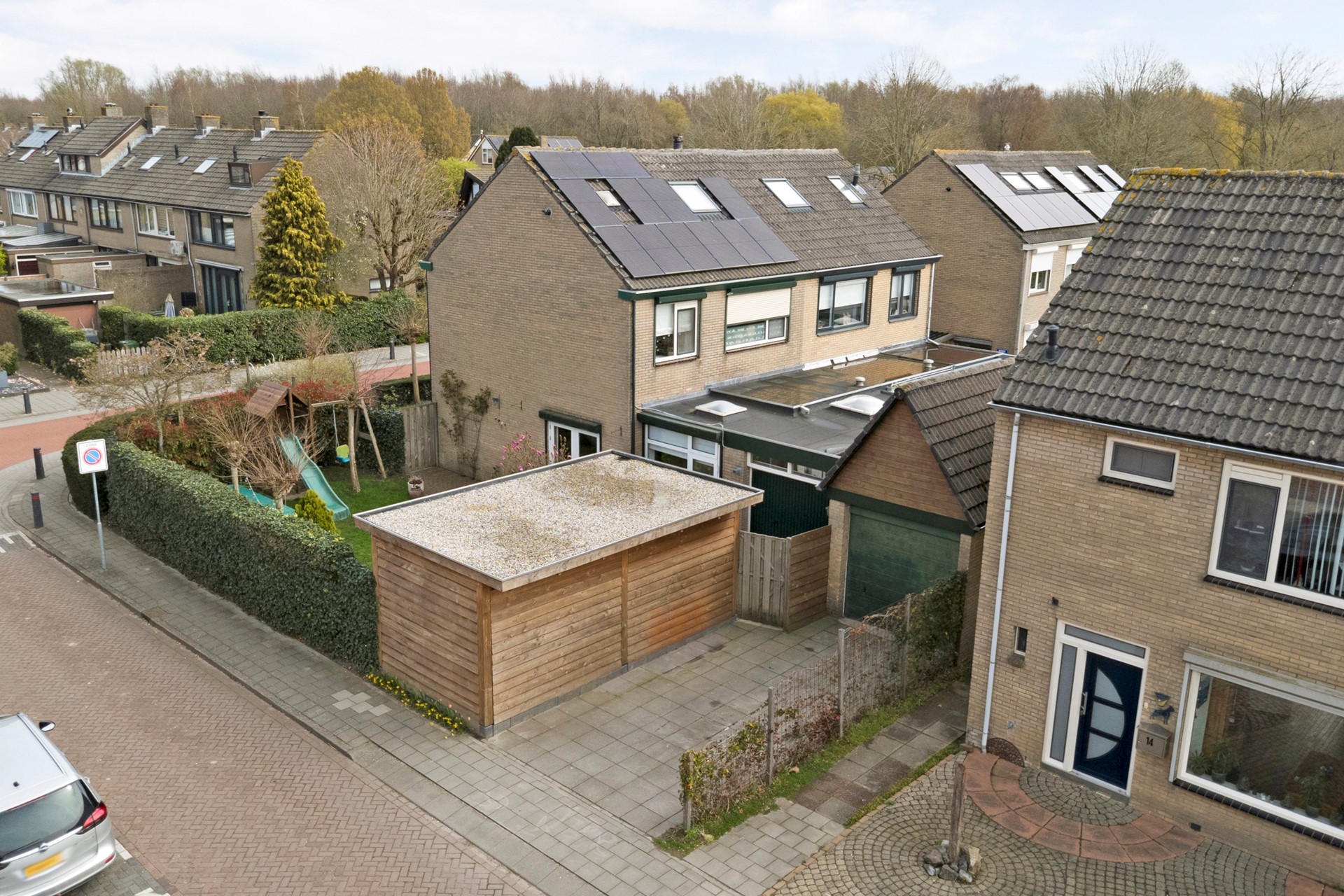 Een woning met een mooie hoekligging, gelegen op een royaal perceel van maar liefst 350 m² eigen grond, met een zonnige tuin, een fraaie overkapping, parkeergelegenheid op eigen erf én (voor sommigen misschien wel dé reden om te komen kijken) een dubbel grote garage (circa 6.50 x 6.50 m., deels voorzien van een bergzolder).