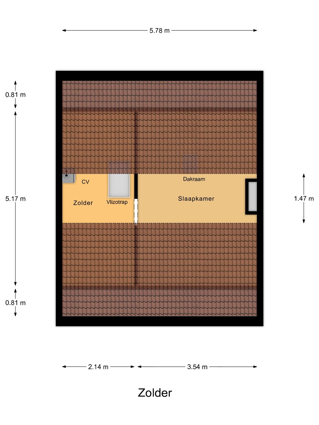 Via een vlizotrap bereikt u – vanaf de overloop – de ruime bergzolder met c.v.-opstelling en de omvormer van de zonnepanelen.